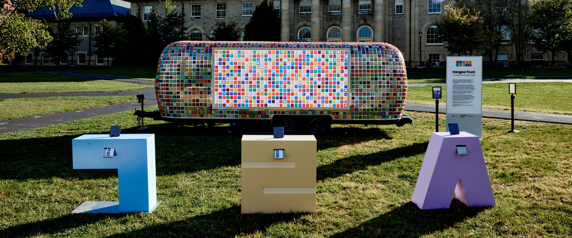 The ‘Hangeul Truck’ is a public service project born from the collaboration between Samsung Galaxy's AI technology, artist Kang Ik-joong—world-renowned for his Hangeul installation art—and the Korean Cultural Center New York (KCCNY). Designed as a public art campaign where technology, art, and culture converge, it is completed through the participants' experiences.