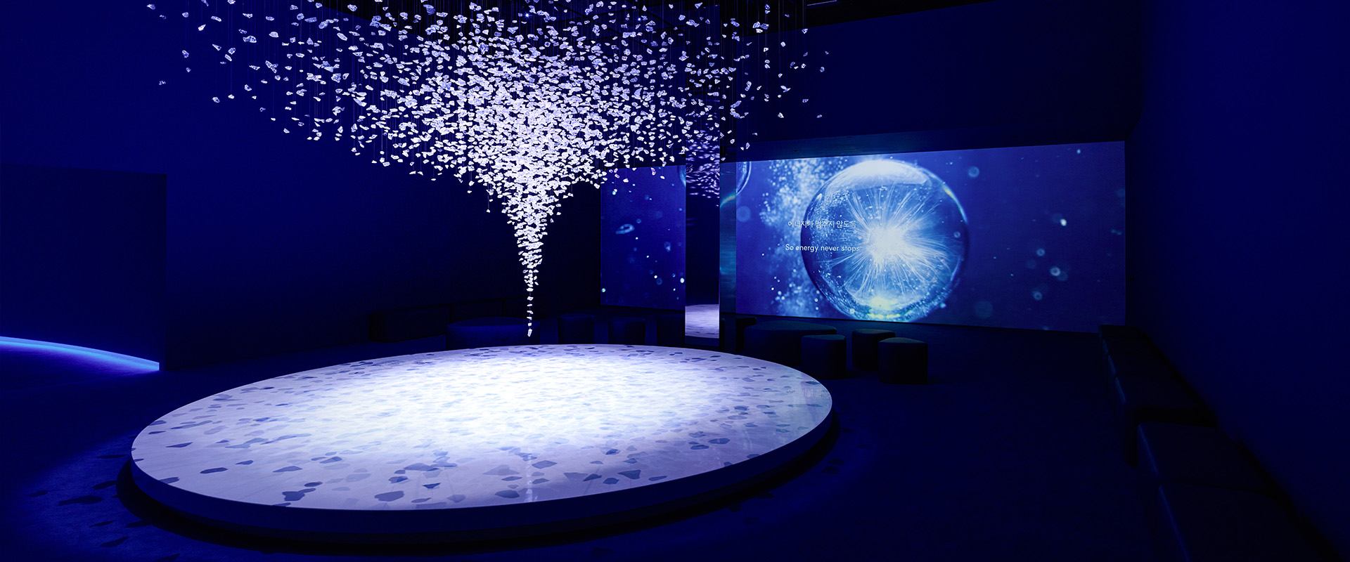 ‘에너지의 여정’이라는 단일 콘셉트 아래 에너지의 과거와 현재 그리고 미래를 관통하는 한국수력원자력의 역할과 기술 발전을 스토리텔링 방식으로 풀어냈습니다. SMR을 비롯한 미래 에너지 기술은 관람객 중심의 서사와 시각적 장치를 통해 쉽게 이해할 수 있도록 구성했으며, 신재생에너지는 에너지 전환 과정에서의 역할을 감각적으로 인식할 수 있도록 표현했습니다. 이를 통해 남녀노소 누구나 직관적이고 몰입감 있게 이해할 수 있는 콘텐츠 경험을 구현했습니다.